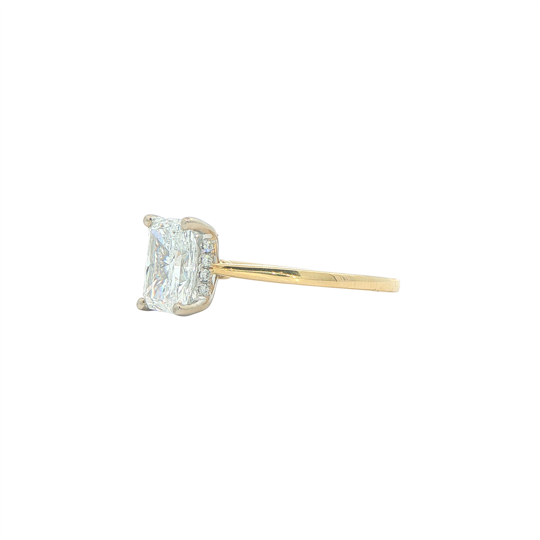 14KT Yellow and White Gold 1.58cts Radiant Rectangular Cut Lab Grown Diamond Solitaire Engagement Ring