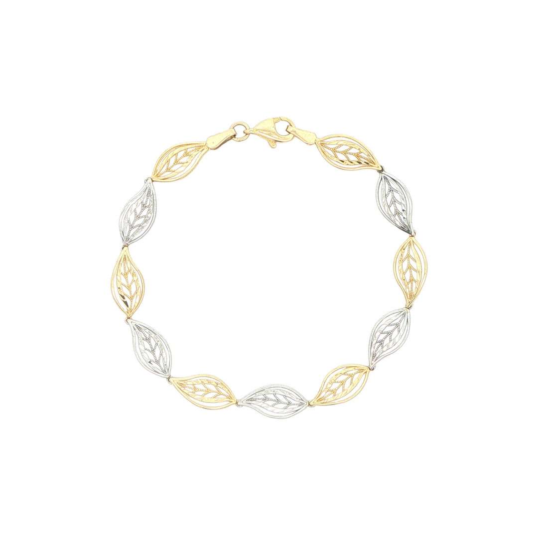 10KT White and Yelow Gold Filigree Leaf Bracelet 7.25"