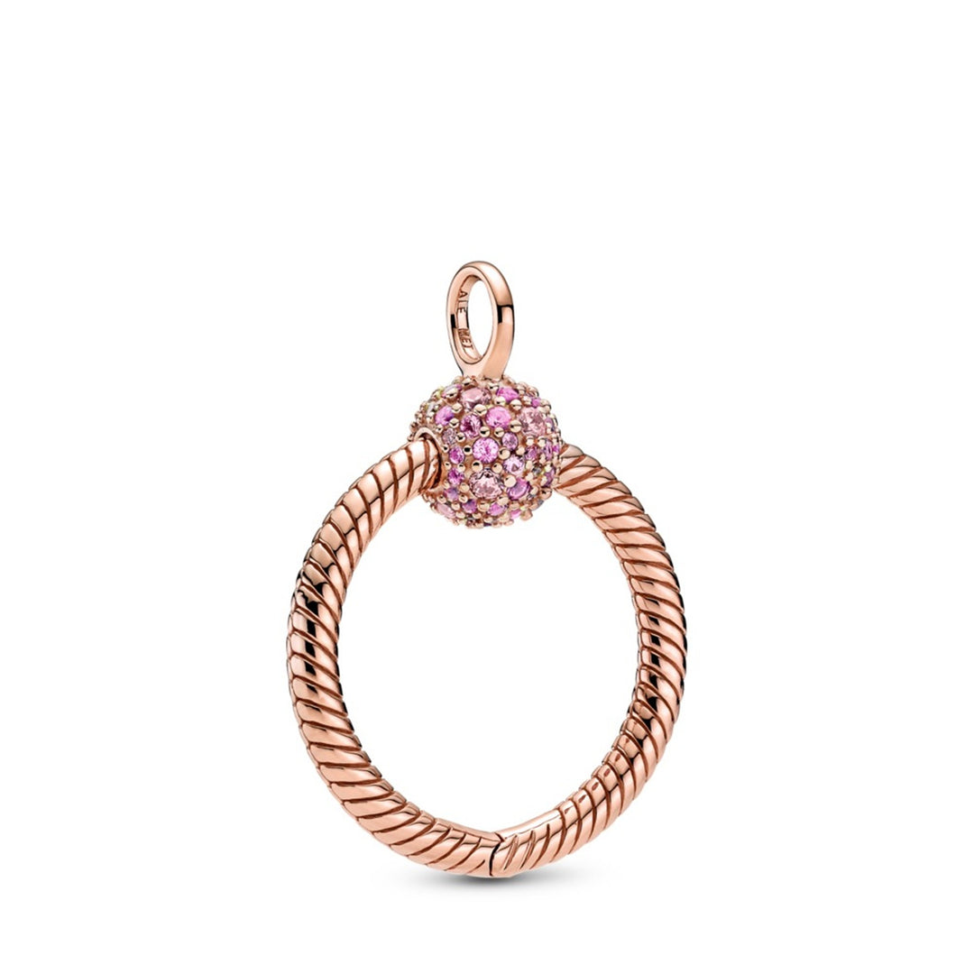 Small Rose Pandora O pendant with synthetic pink sapphire and fancy fairy tale pink CZ