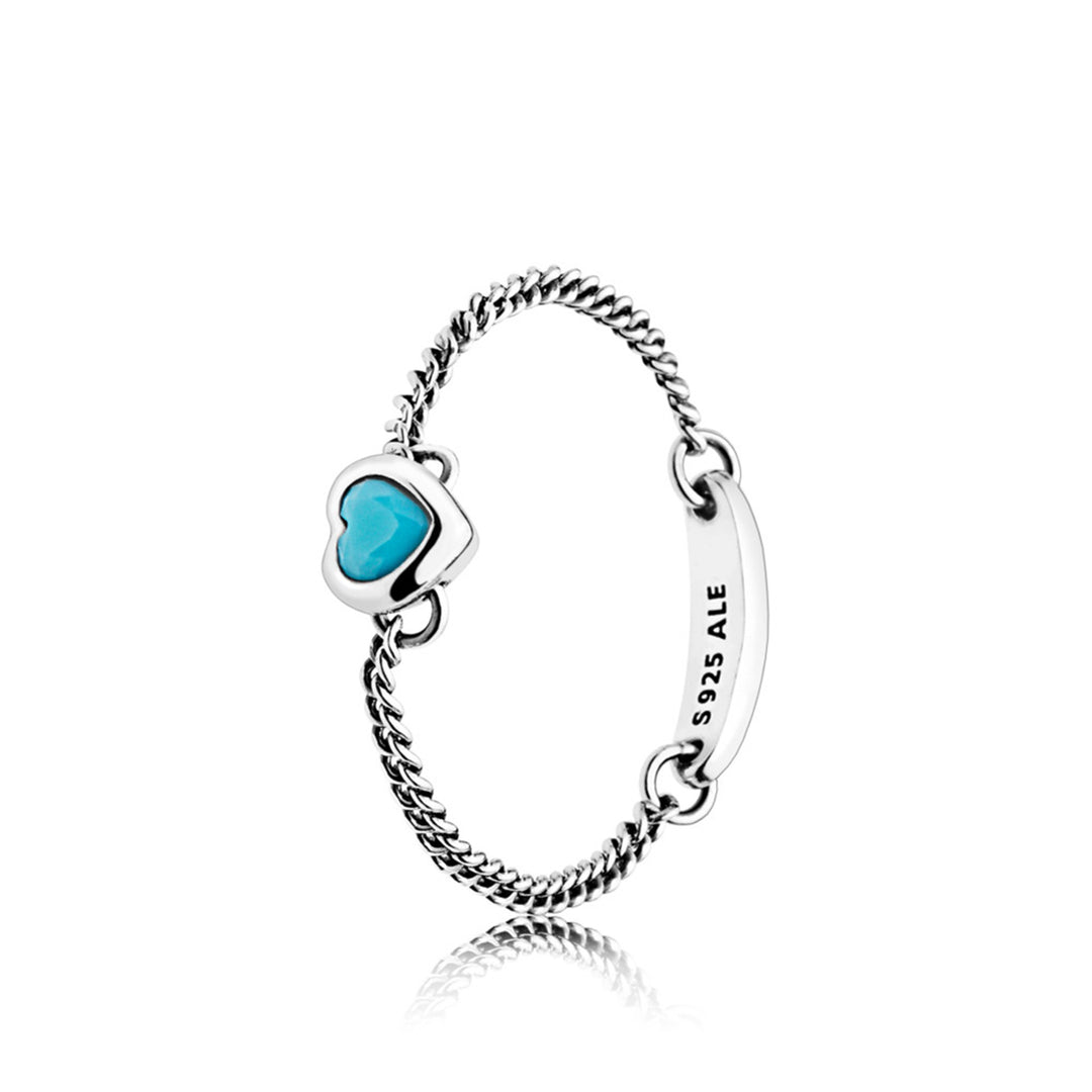 Spirited Heart Pink CZ Chain ring in sterling silver with 1 bezel-set heart-shaped pink CZ