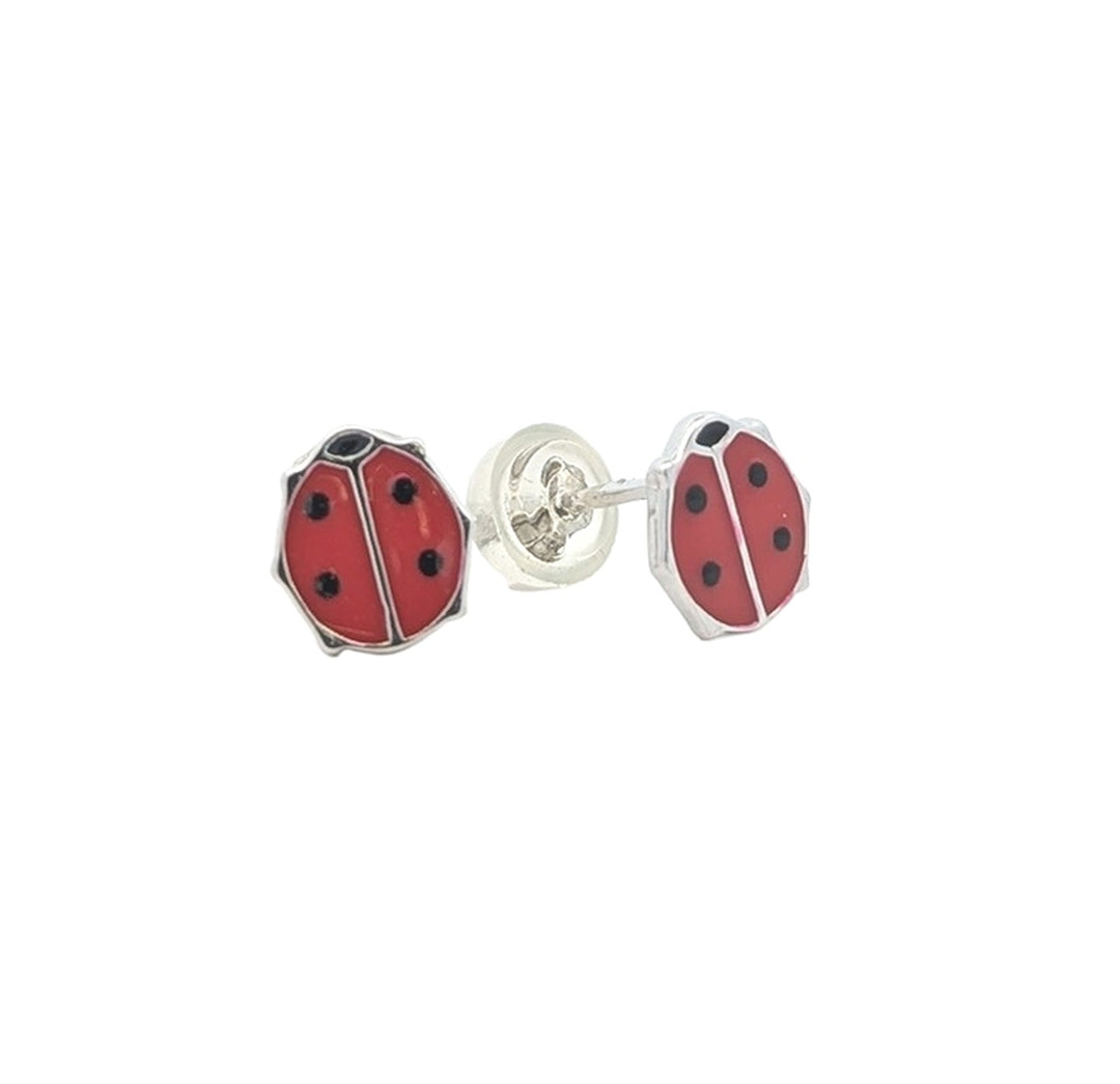 Sterling Silver Enamal Lady Bug Stud Earrings
