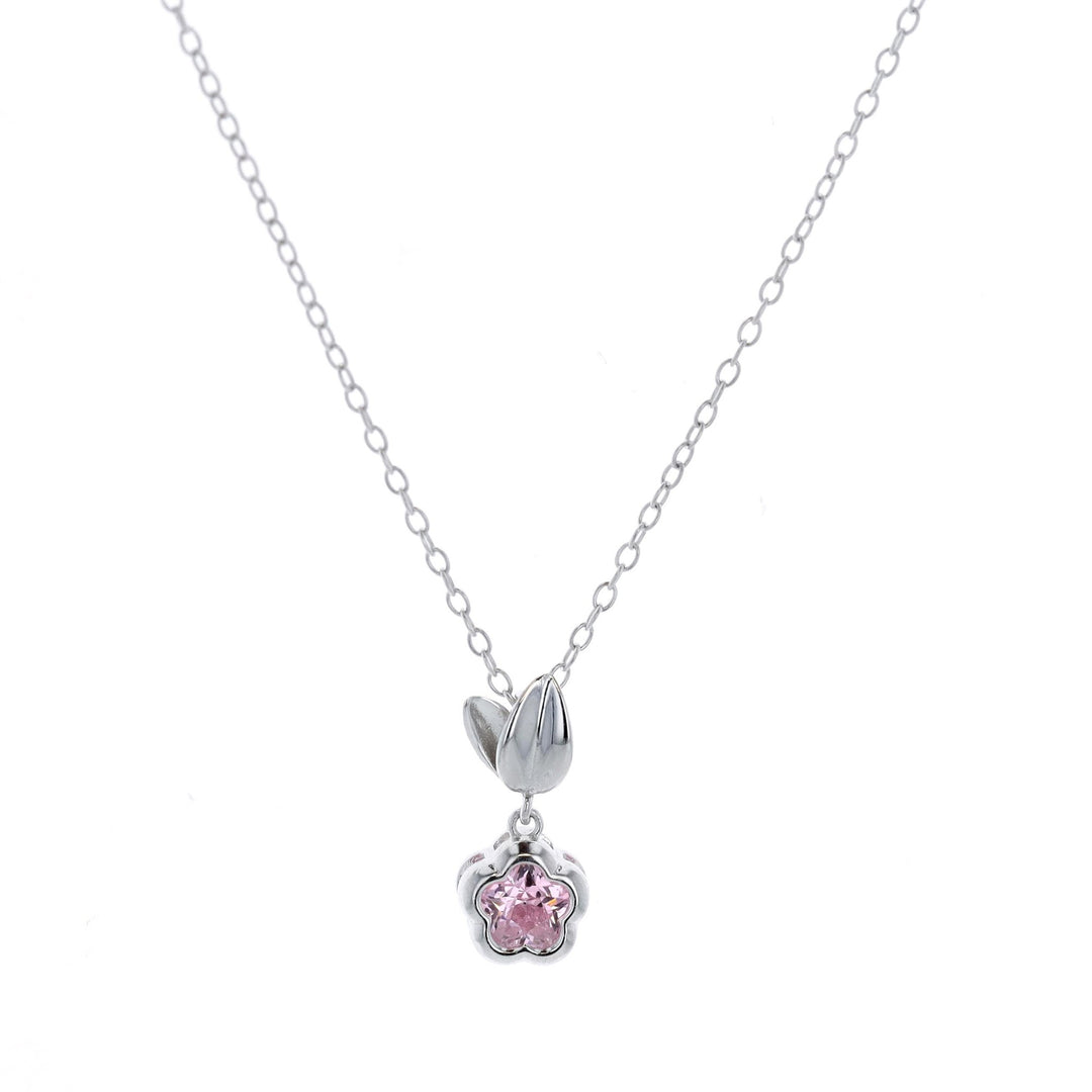Sterling Silver Pink Flower Necklace