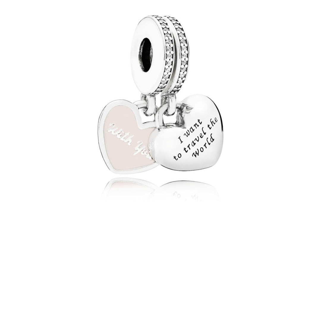 travel together forever, pink enamel & clear cz