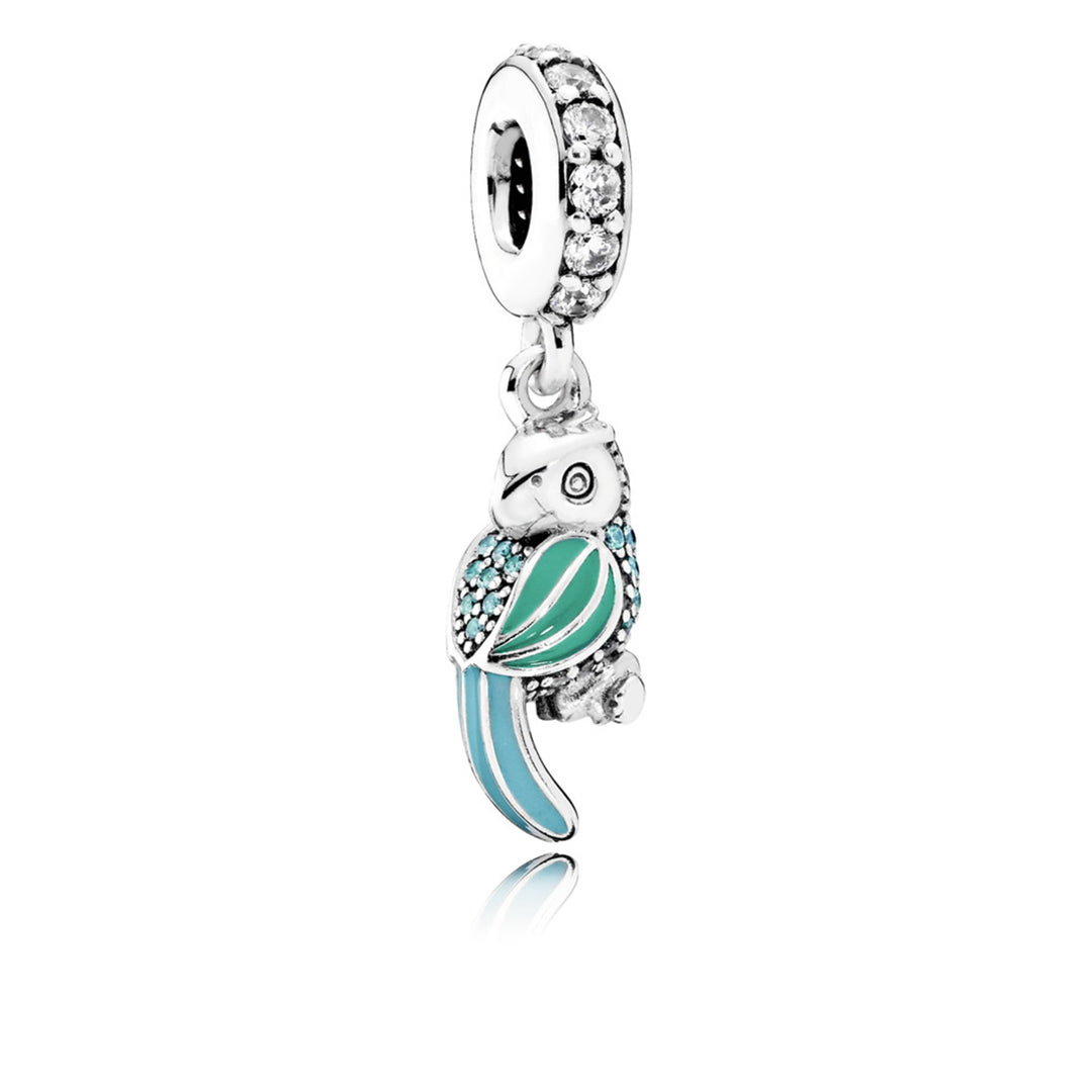 Tropical Parrot, Mixed Enamels, Teal & Clear CZ