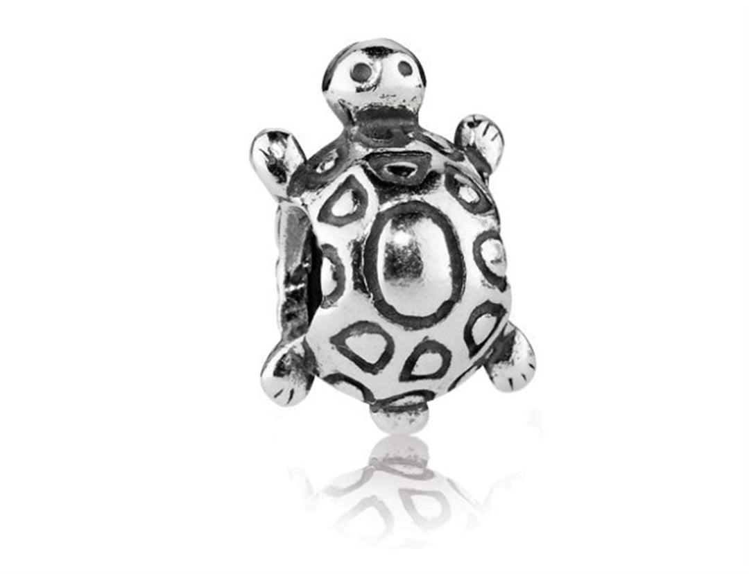 Turtle charm in sterling silver with 2 bezel-set clear CZ