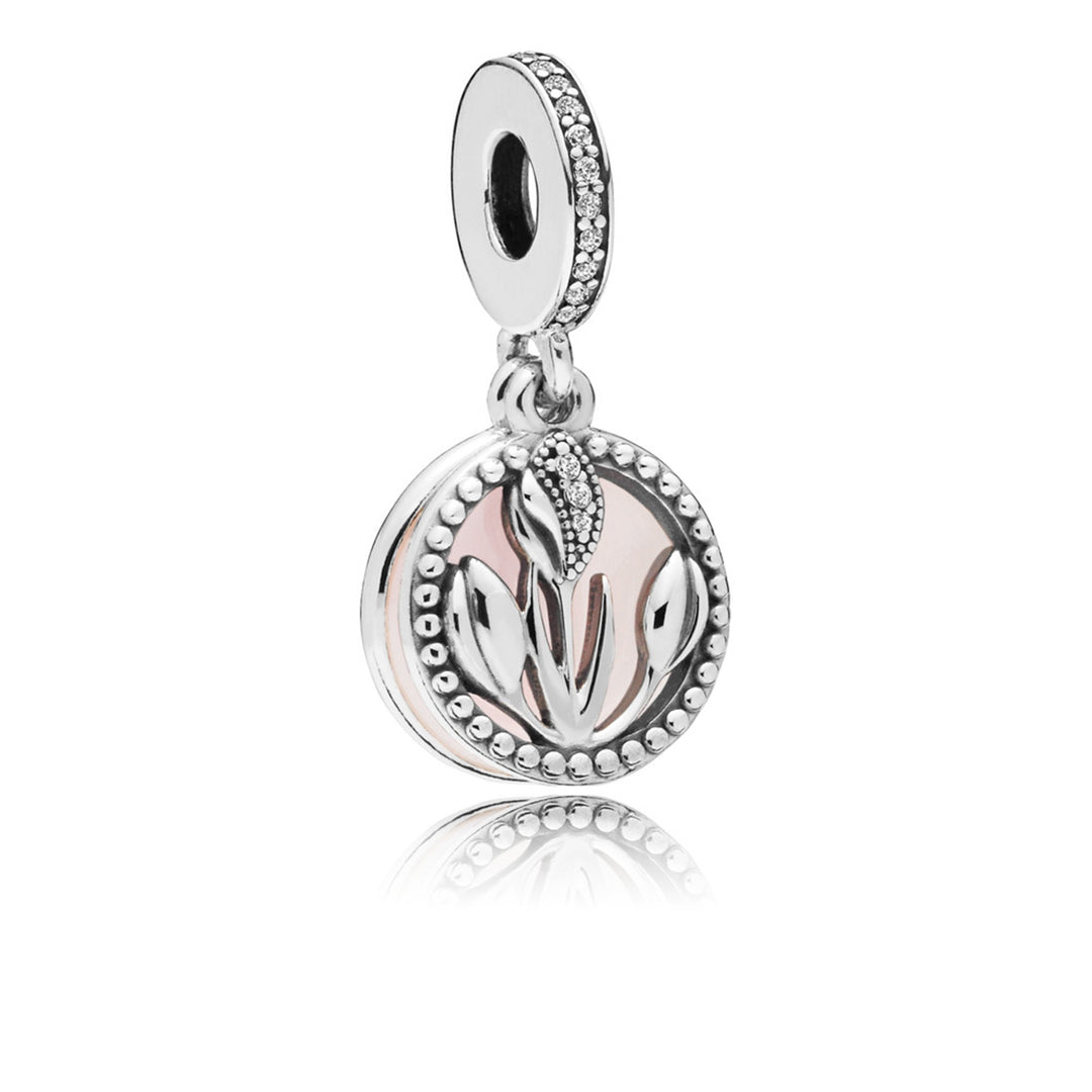 Tulip silver dangle with clear CZ, white and shaded pink enamel
