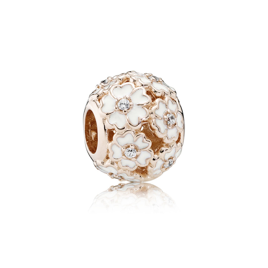 White Primrose Meadow, White Enamel & Clear CZ