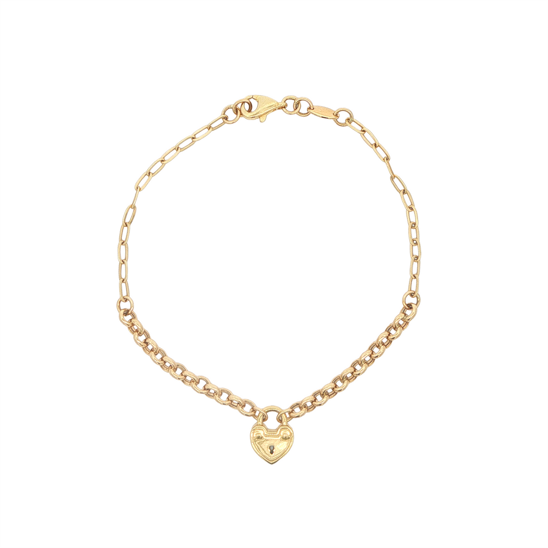 10KT Yellow Gold Heart Lock Bracelet 7.5"