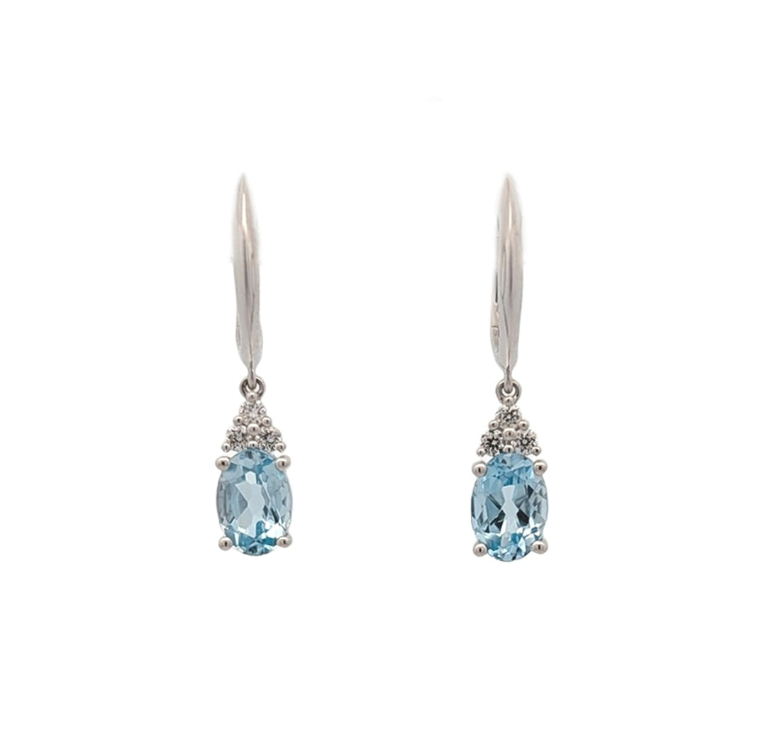 18K White Gold 0.14ctw Diamond Blue Topaz Drop Earrings