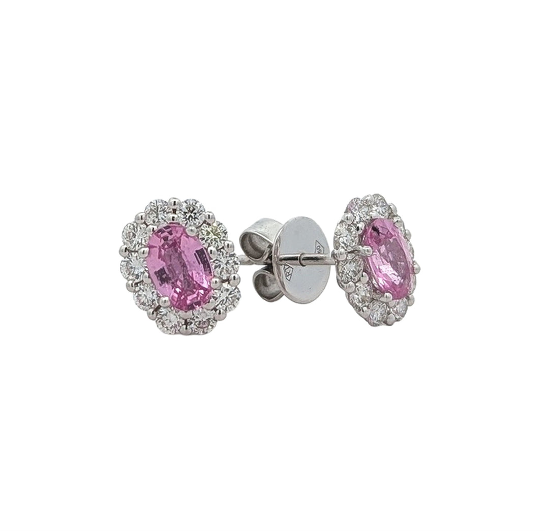 18K White Gold 0.66ctw Diamond Pink Sapphire Stud Earrings