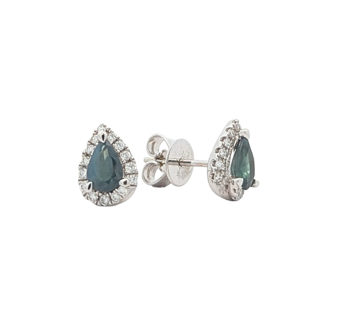 18KT White Gold Natural Blue Sapphire and 0.86ctw Diamond Earrings