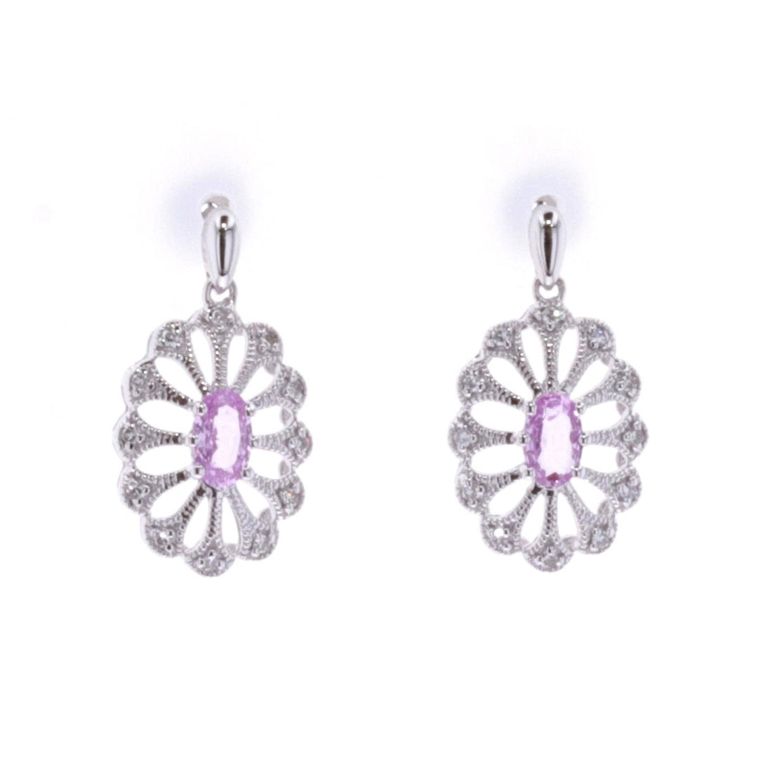 10KT White Gold Pink Sapphire and Diamond Drop Earrings