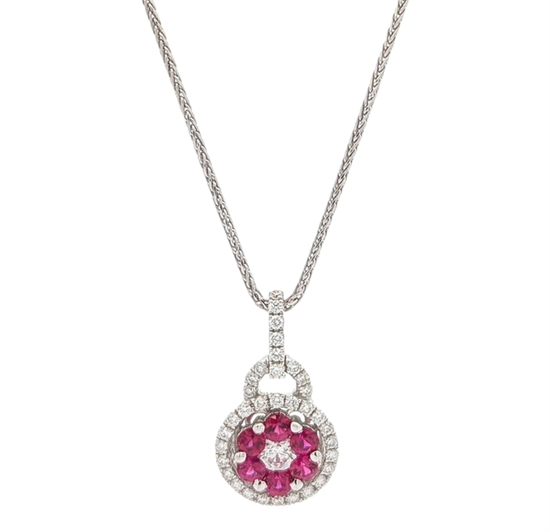 18KT White Gold Ruby and 0.41ctw Diamond Necklace