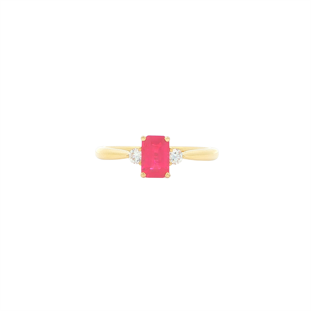 18KT Yellow Gold Ruby and 0.10ctw Diamond Ring