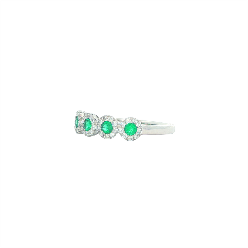14K White Gold Emerald 0.06ctw Diamond Ring