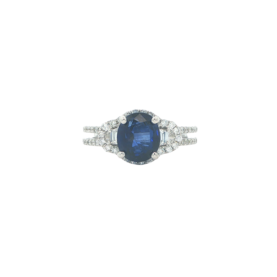 18KT White Gold Sapphire and 0.16ctw Diamond Ring