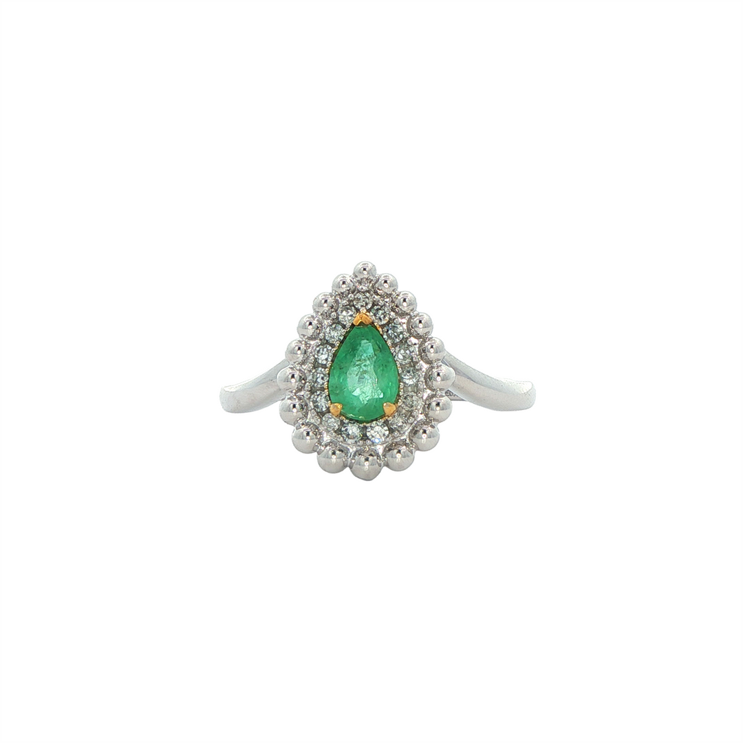 18KT White Gold Emerald and 0.25ctw Diamond Ring
