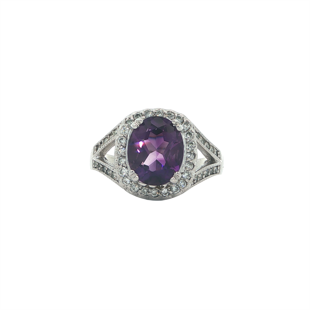 14K White Gold Amethyst 0.35ctw Diamond Estate Ring
