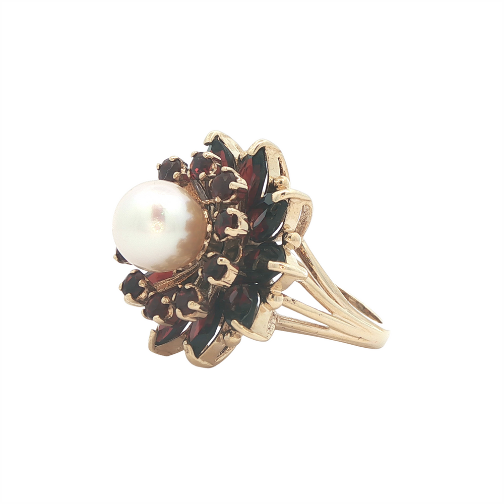 10K Yellow Gold Garnet & Pearl Estate Ring