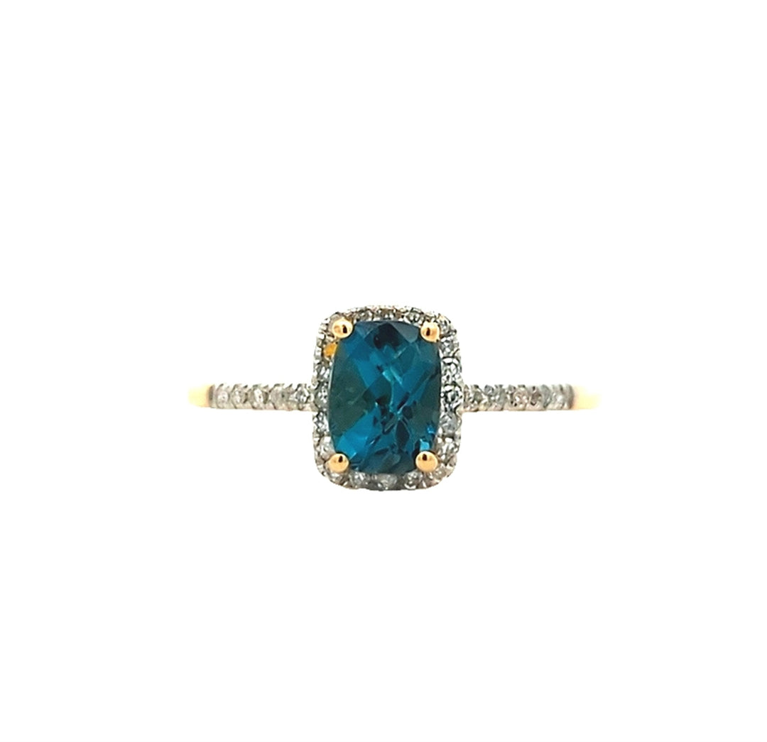 14KT Yellow Gold London Blue Topaz and Diamond Ring