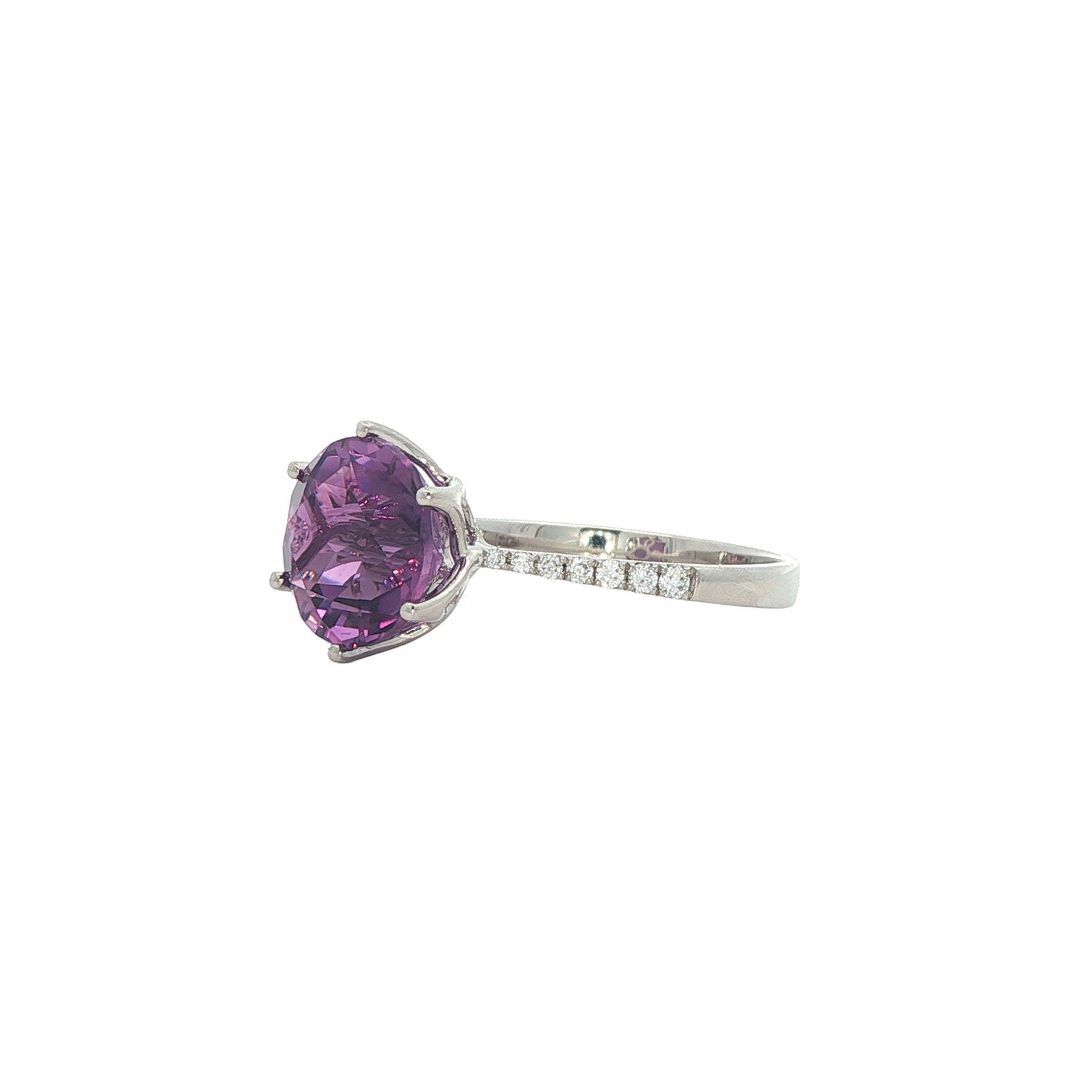 14K White Gold Amethyst 0.10ctw Diamond Ring