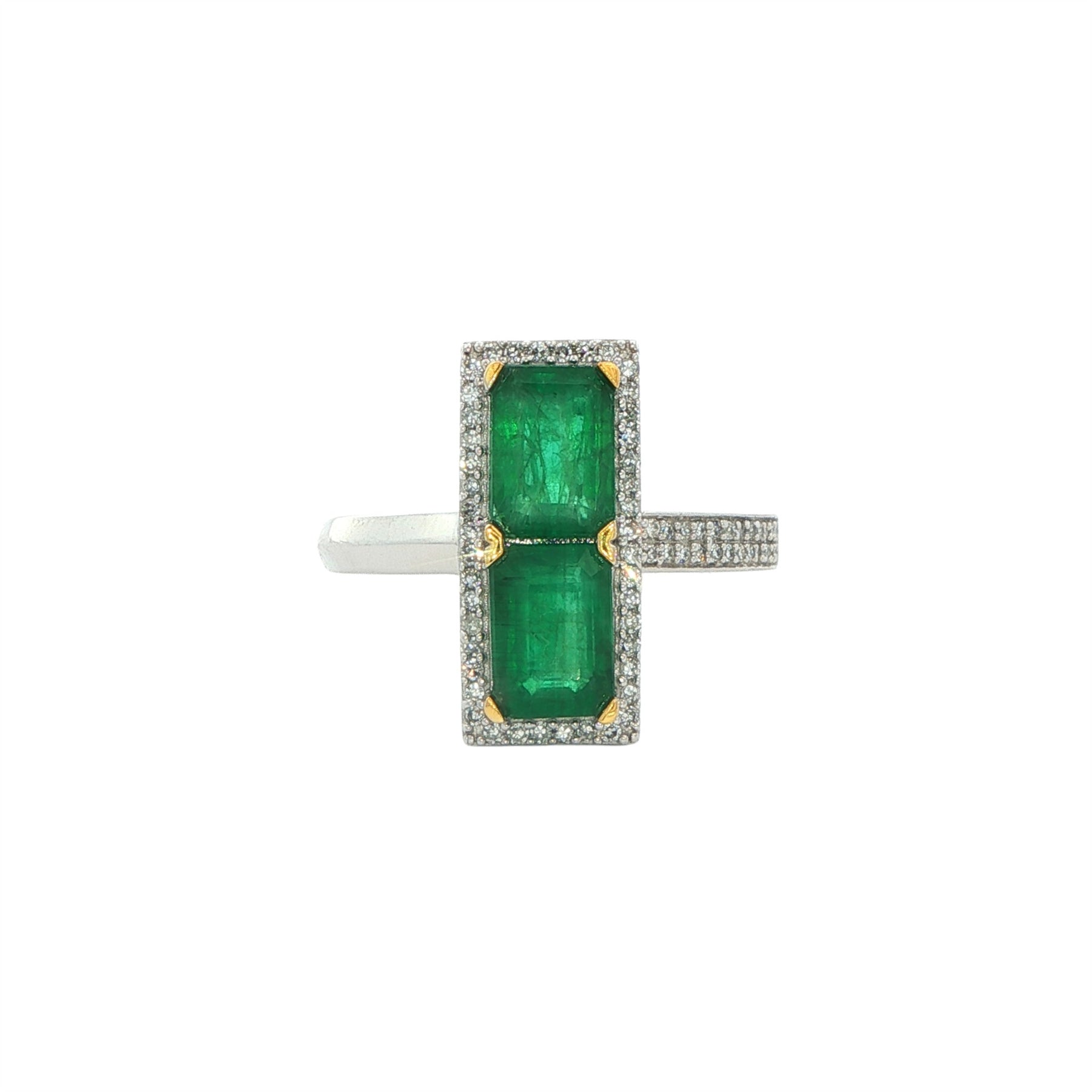 14K White Gold Emerald 0.19ctw Diamond Ring