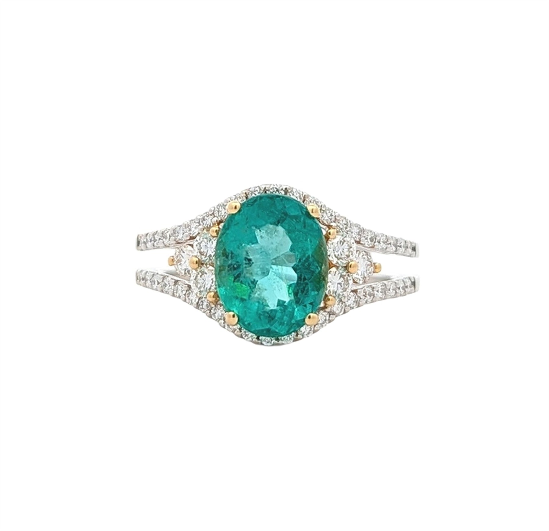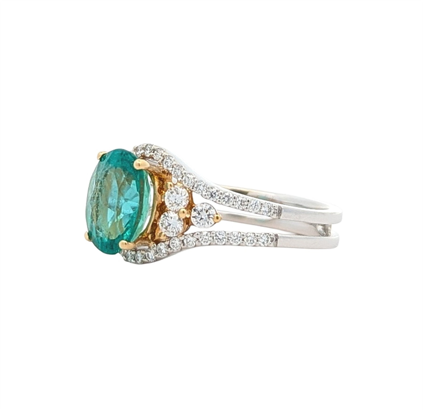 18K Two-Tone Genuine Emerald 0.50ctw Diamond Ring