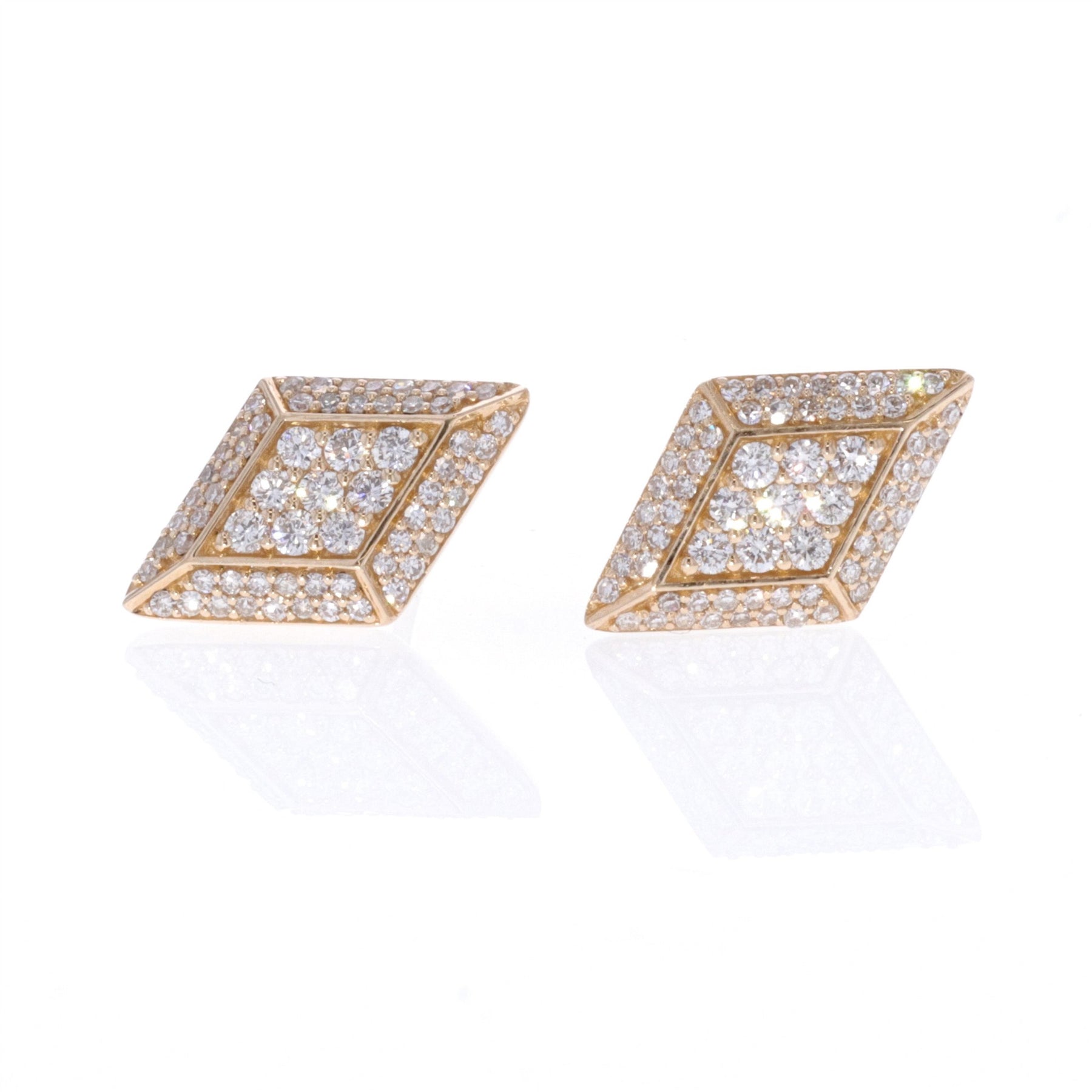 One pair stamped 14KT yellow gold hand assembled custom made diamond earrings with butterfly backings with a high polish finish. Condition is new.