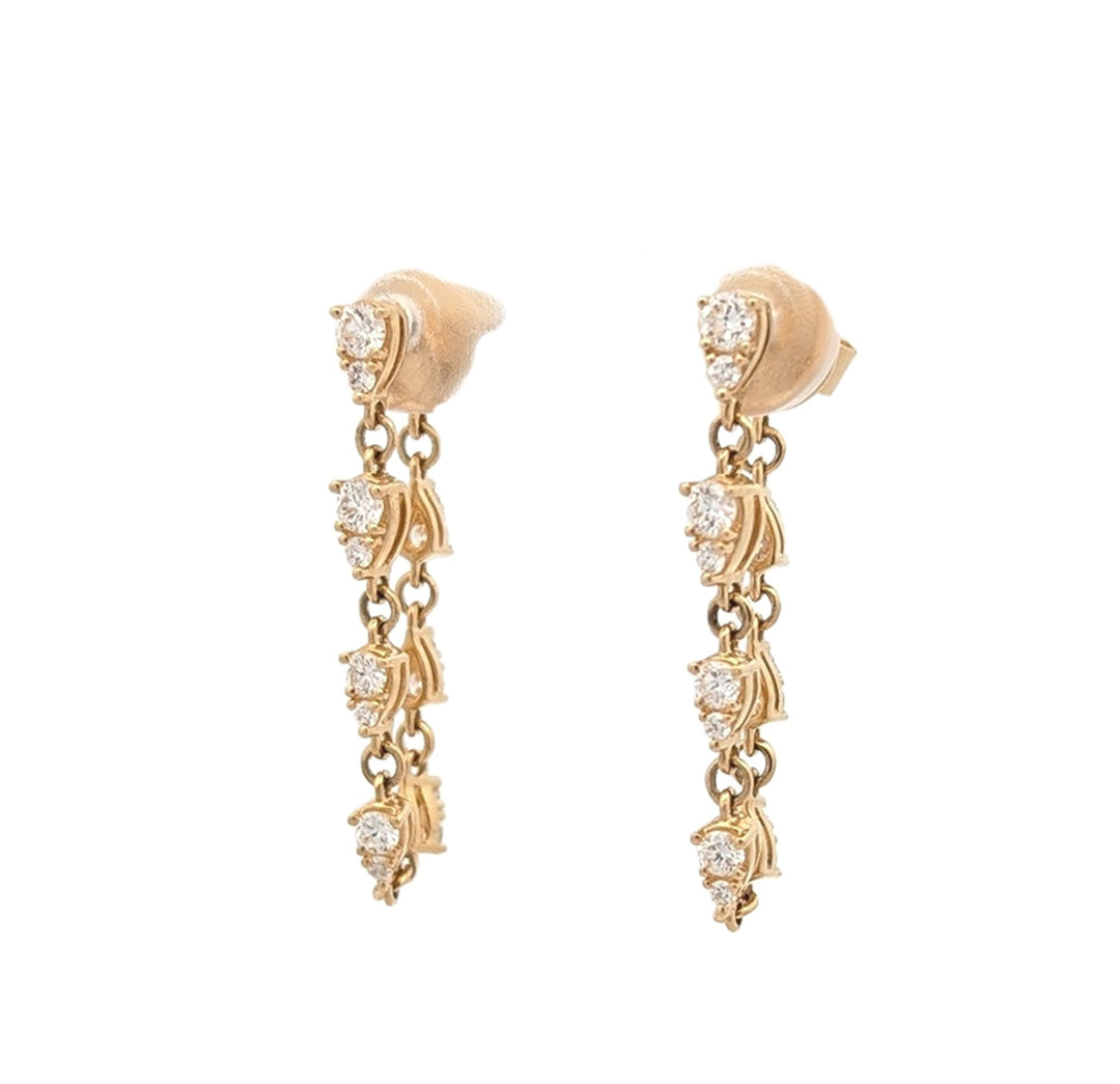 18K Yellow Gold 0.69ctw Diamond Dangle Earrings