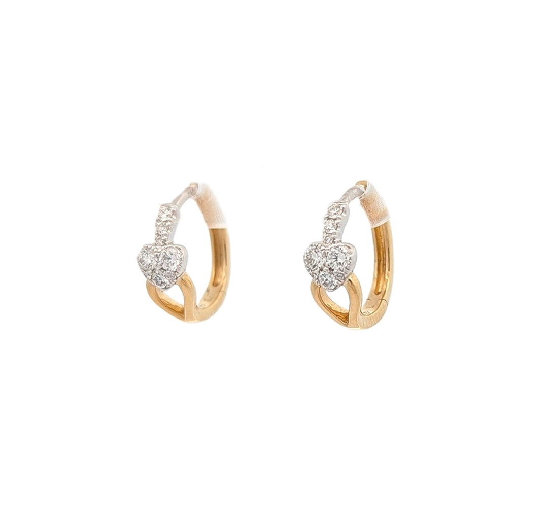 18K Two-Toned Gold 0.30ctw Diamond Huggie Heart Earrings