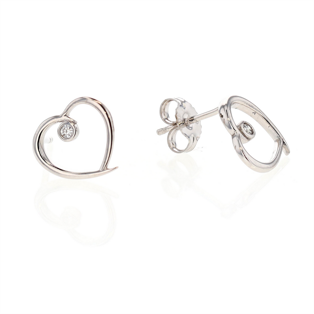 10KT White Gold 0.04ctw Diamond Heart Stud Earrings