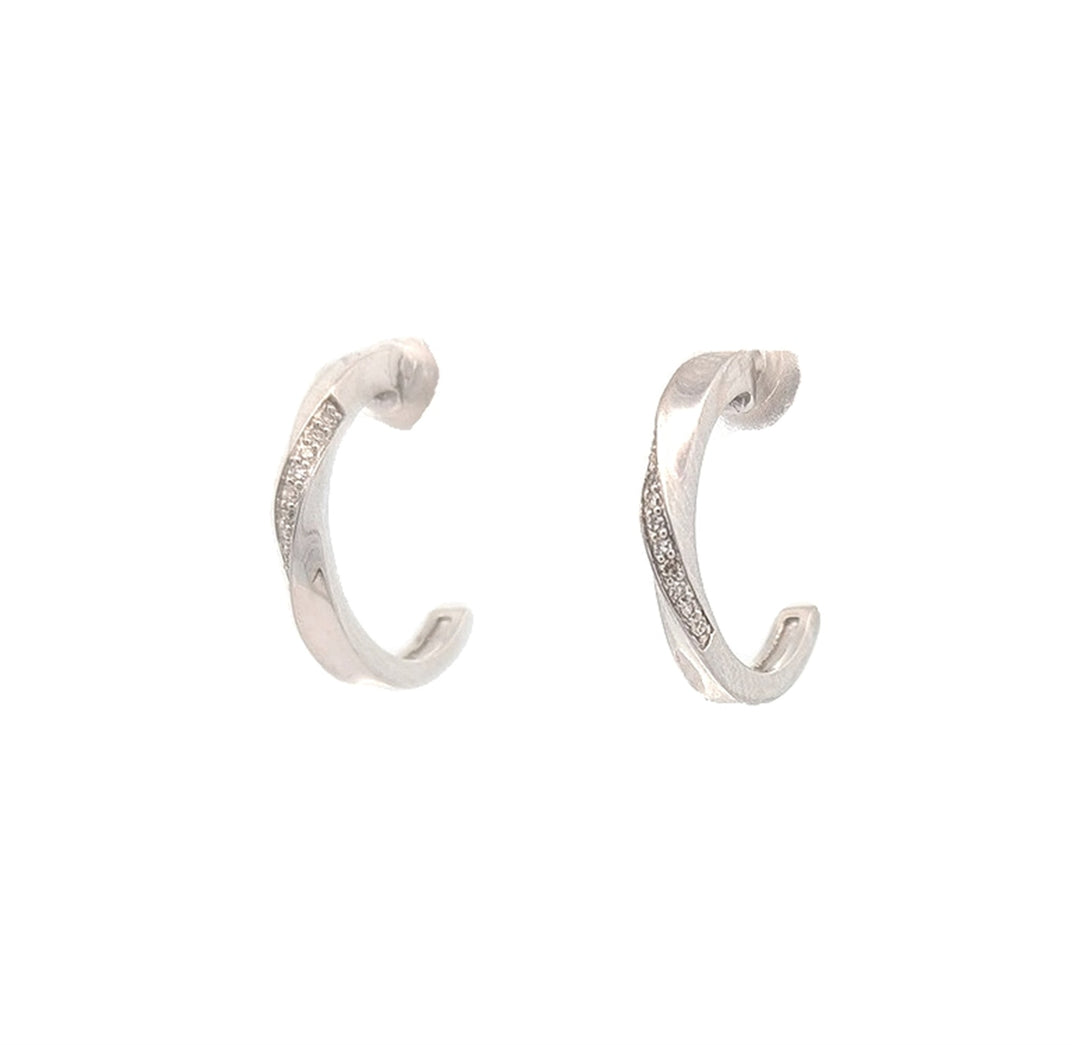 10KT White Gold 0.05ctw Diamond Twist Pave Huggie Earrings