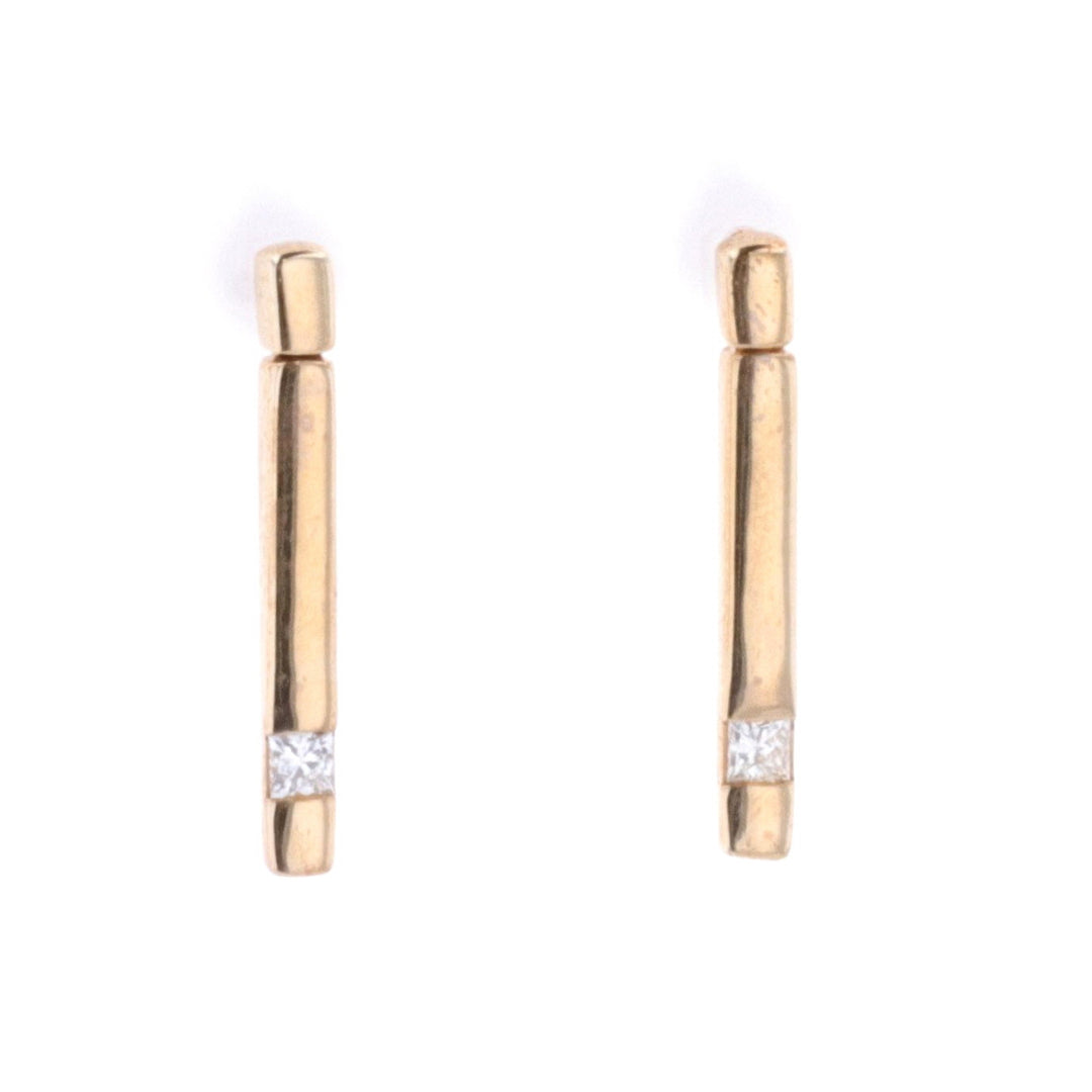 10KT Yellow Gold 0.10ctw Diamond Icicles Small Square Stud Earrings