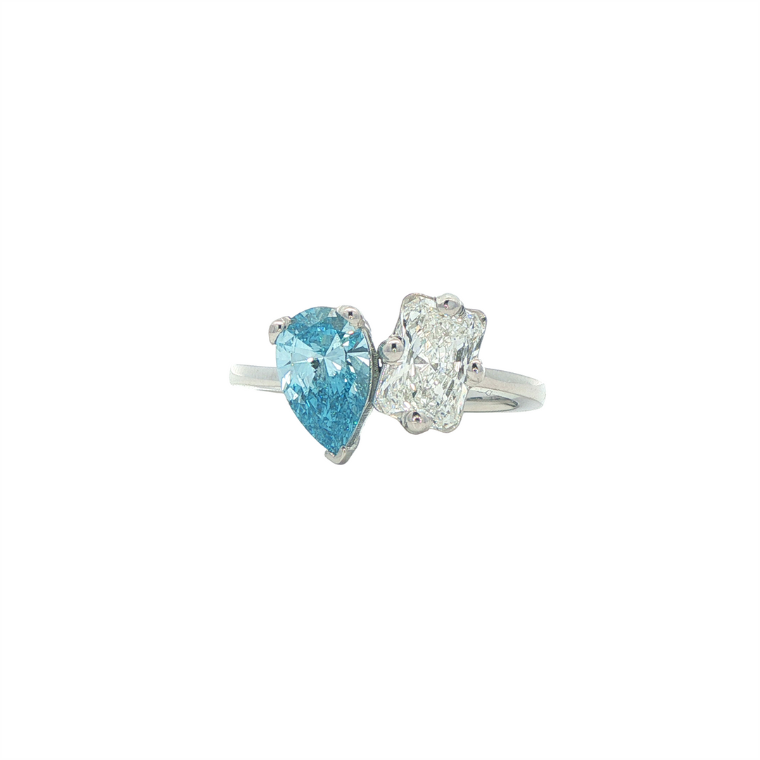 14K White Gold 2.06ctw Blue & White Lab Grown Diamond Toi Et Moi Ring