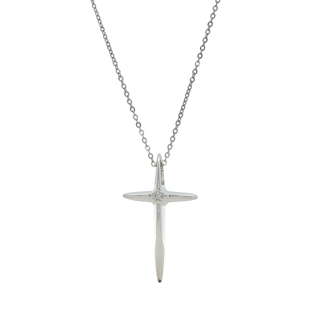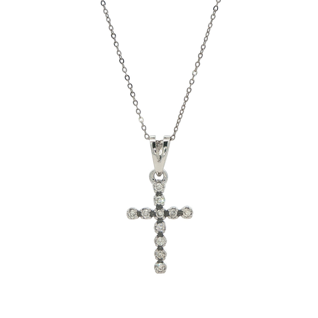 10KT White Gold 0.02ctw Diamond Cross Necklace