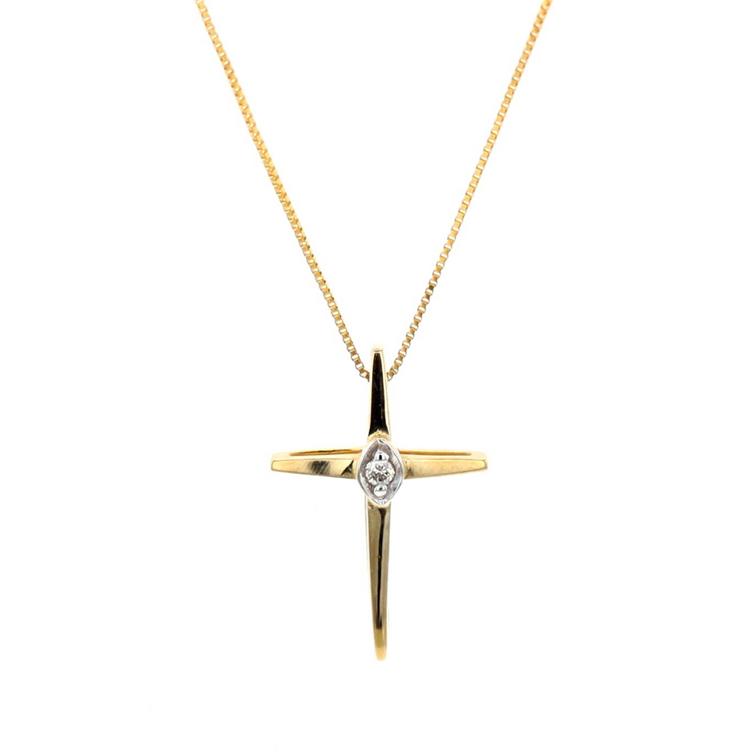 10KT Yellow Gold 0.015ctw Diamond Cross Necklace