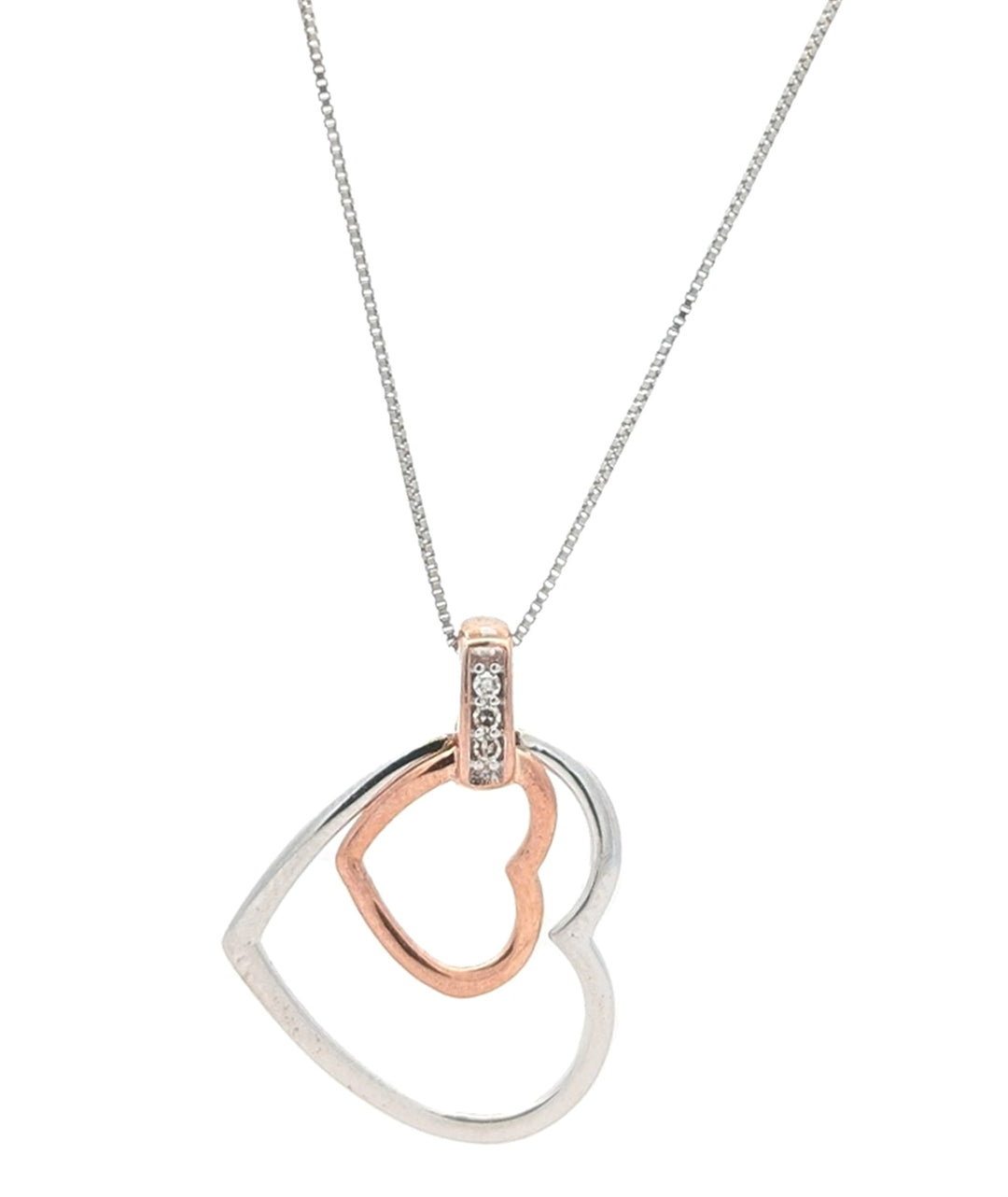 10KT White and Rose Gold 0.015ctw Heart Necklace