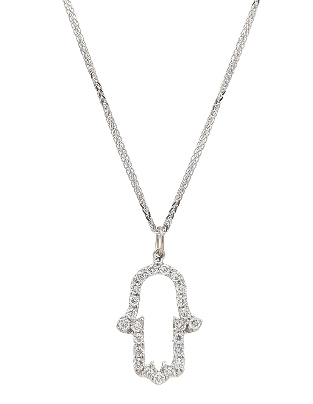 14KT White Gold Diamond Hamsa 18" Estate Necklace