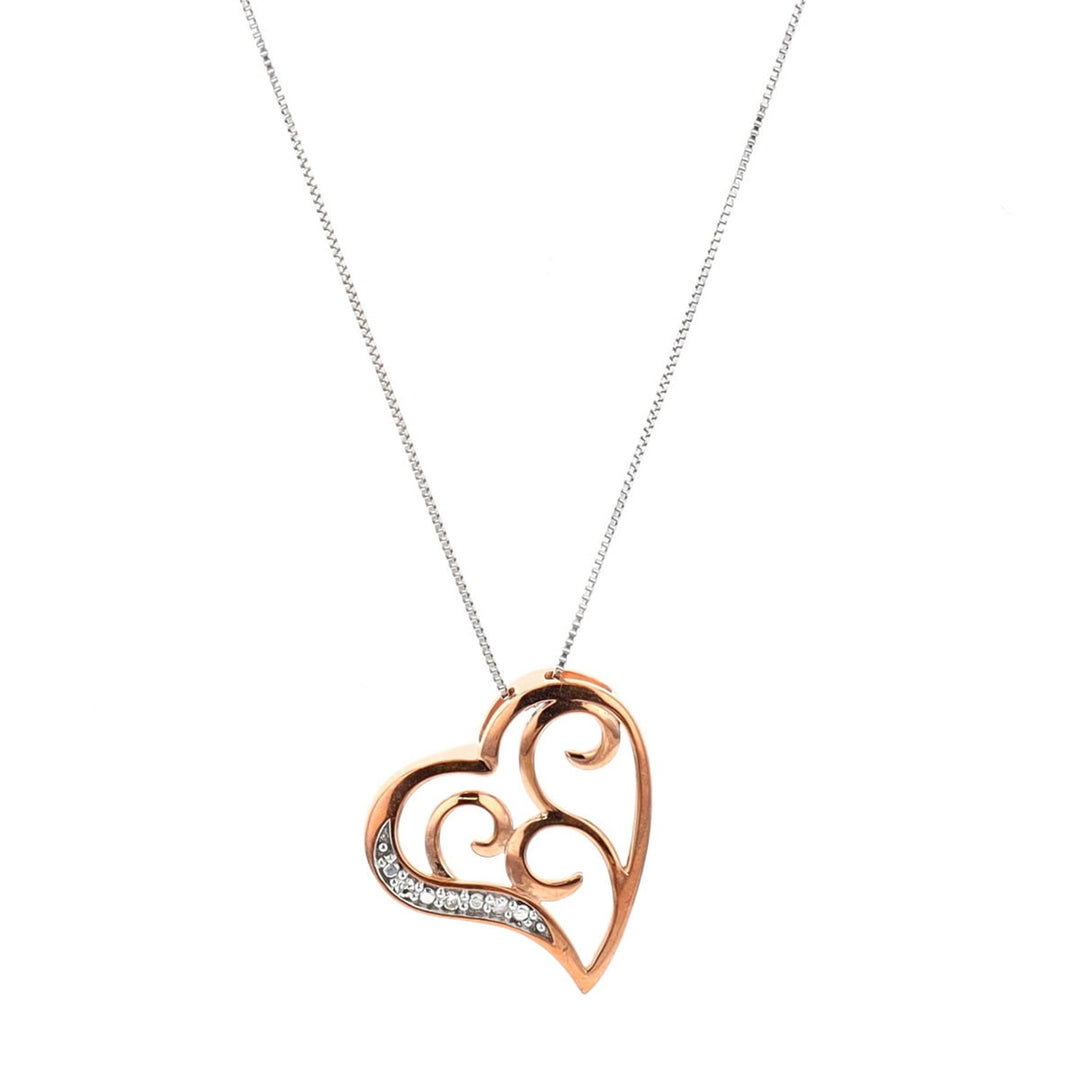 10KT Rose and White Gold 0.015ctw Diamond Heart Necklace
