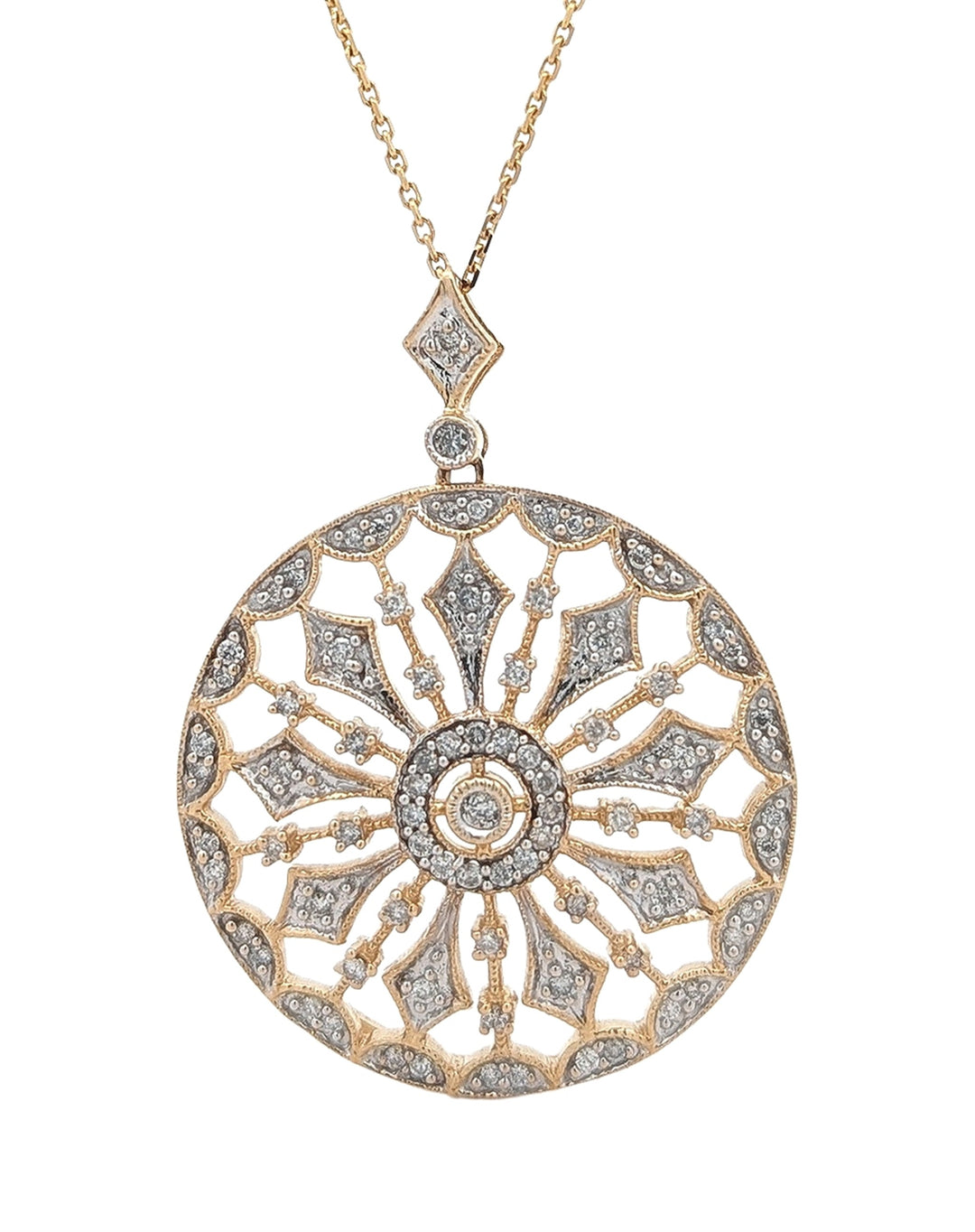 14K Yellow Gold Diamond Mandala 16" Estate Necklace