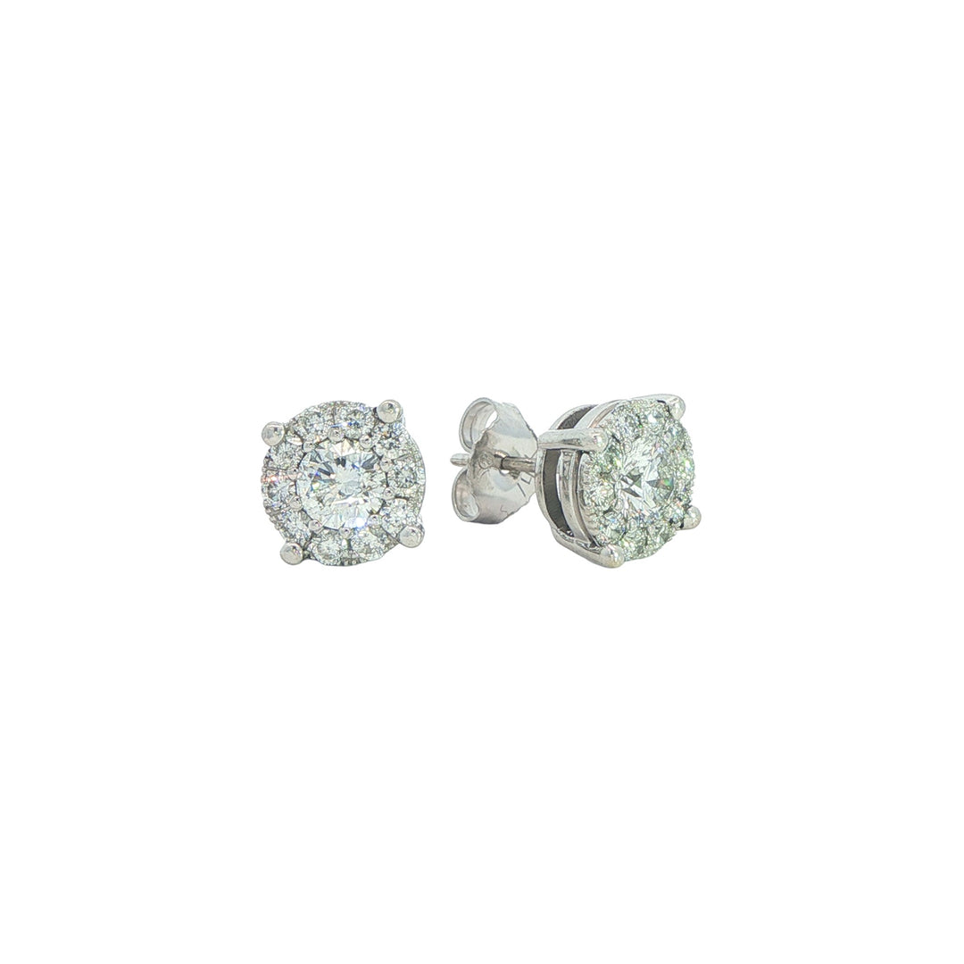 14K White Gold 1.00ctw Diamond Cluster Estate Stud Earrings