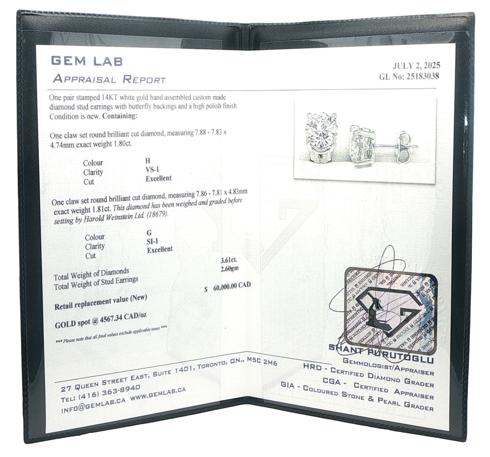 14KT White Gold 3.61ctw Diamond Stud Estate Earrings
