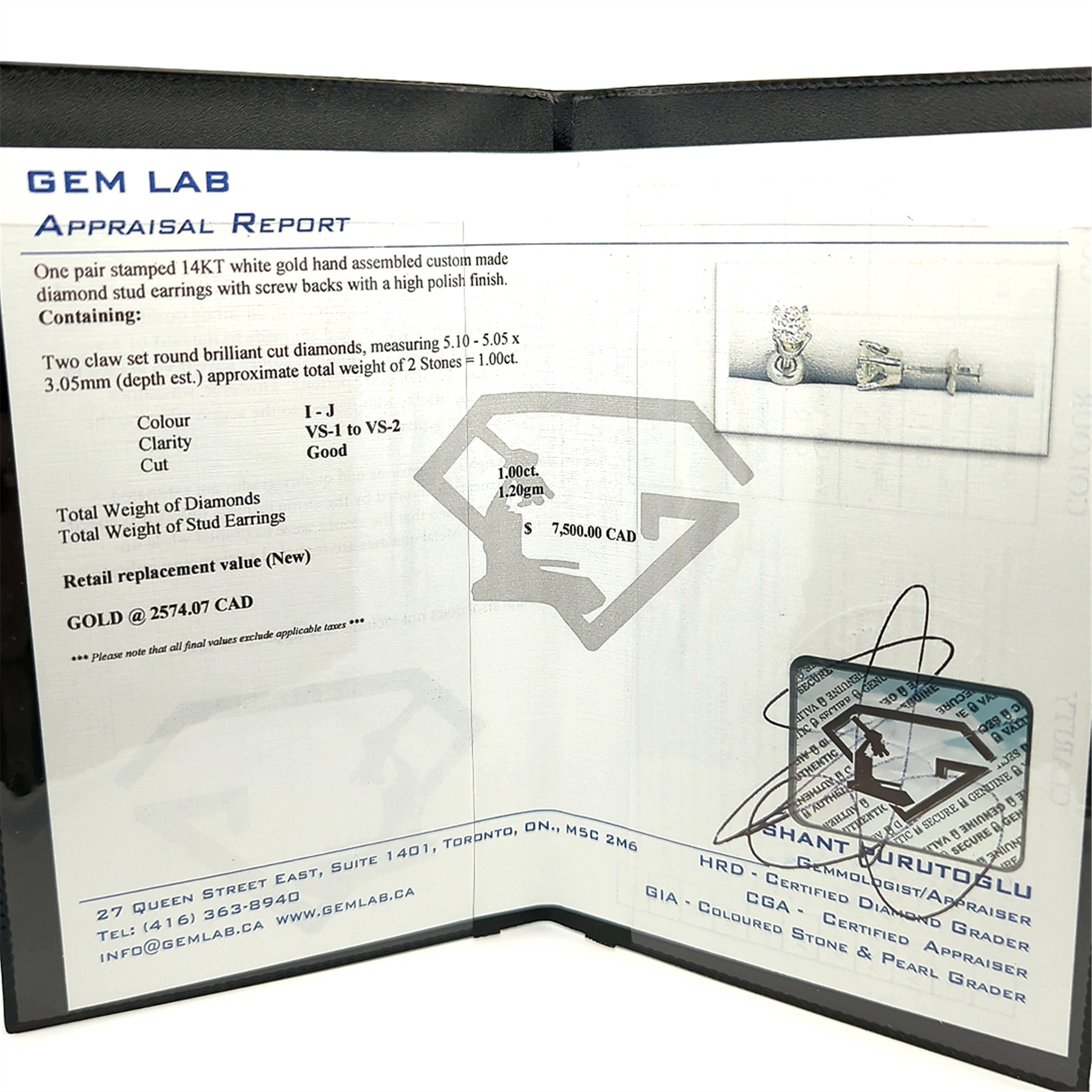 Retail Replacement Value (New) $7,500.00 CAD