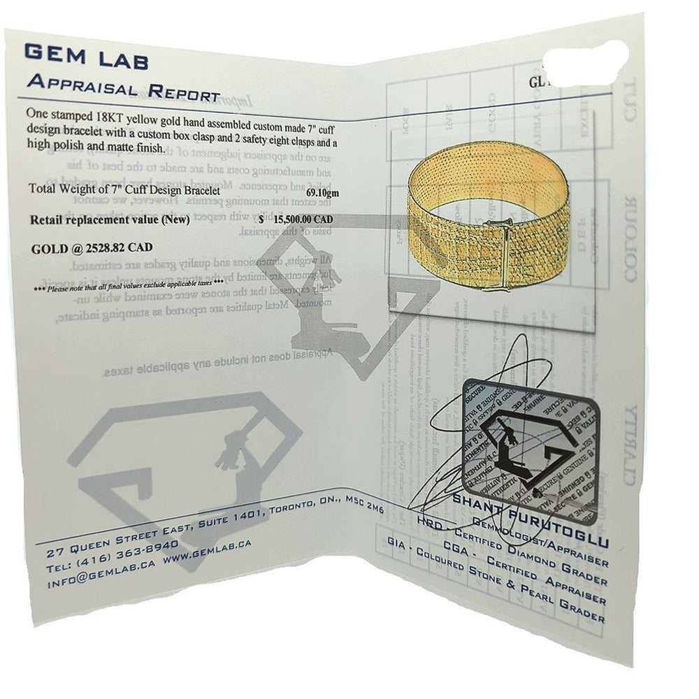 18KT Yellow Gold 7" Cuff Design Estate Bracelet