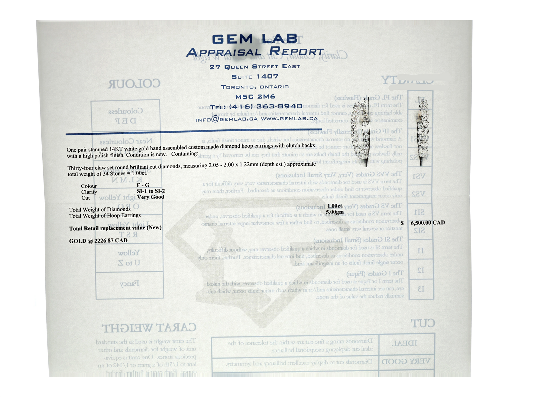 Retail Replacement Value (New) $6,500.00 CAD