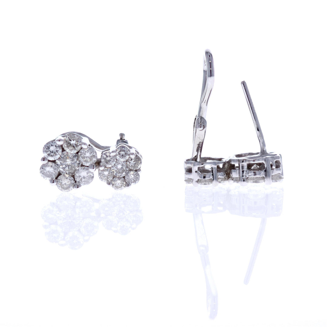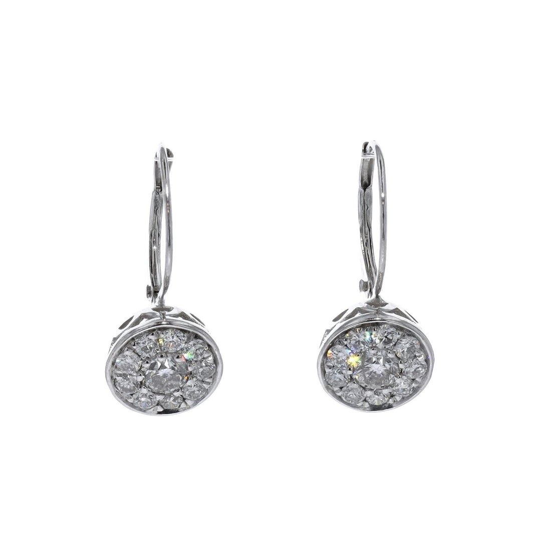 14KT White Gold 0.96ctw Diamond Cluster Drop Estate Earrings