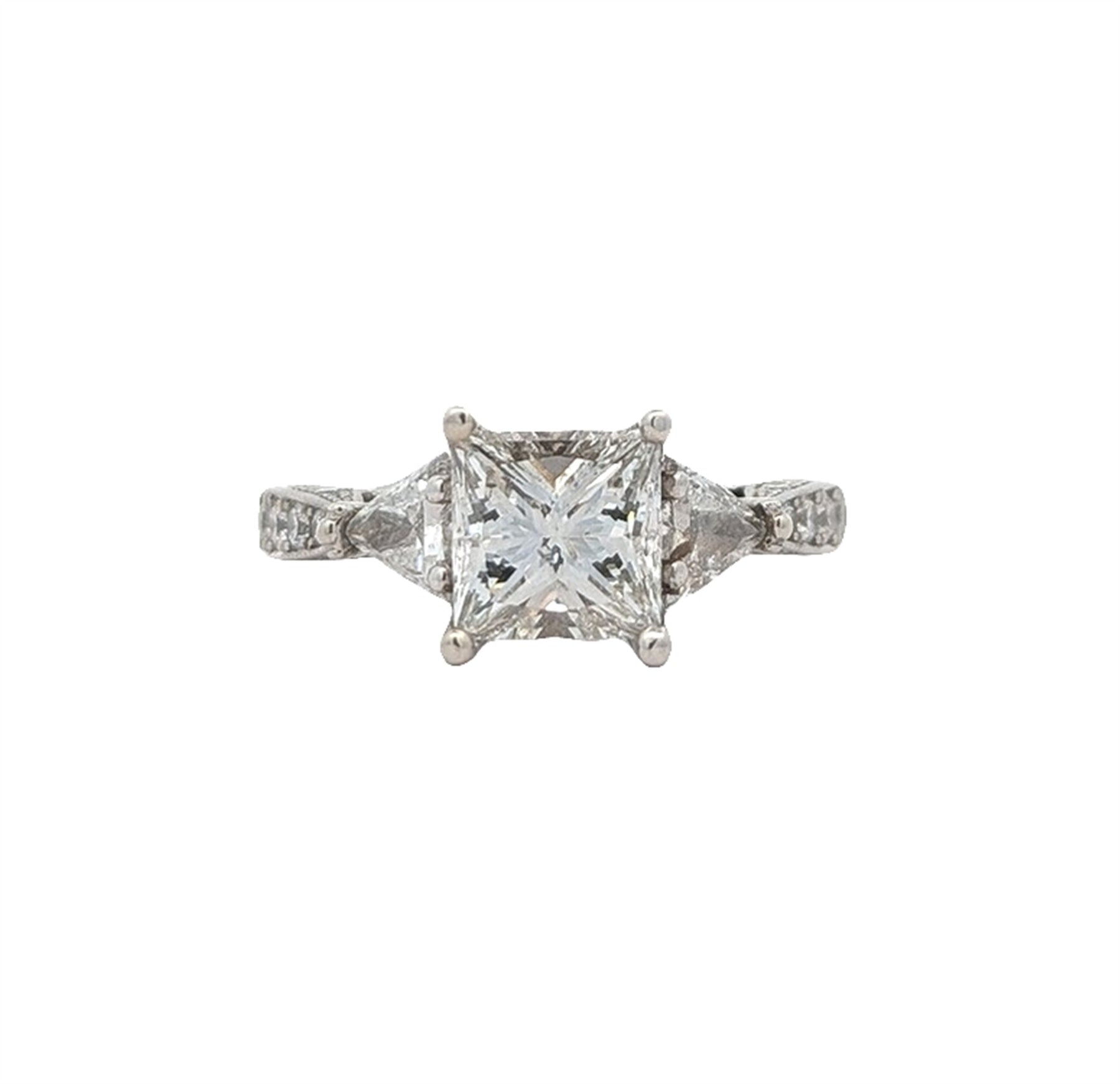 One claw set princess cut diamond, measuring 6.46 x 6.43 x 4.50mm (depth est.) approximate weight of 1.53ct.