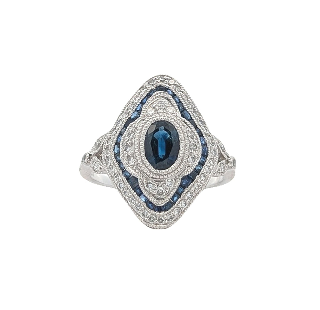 14KT White Gold Natural Blue Sapphire and 0.90ctw Diamond Estate Ring