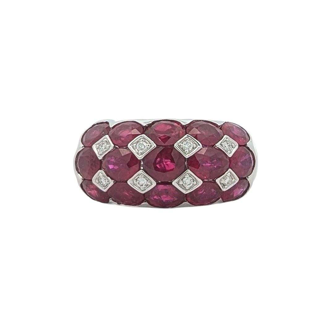 14KT White Gold Natural Ruby and 0.07ctw Diamond Estate Band