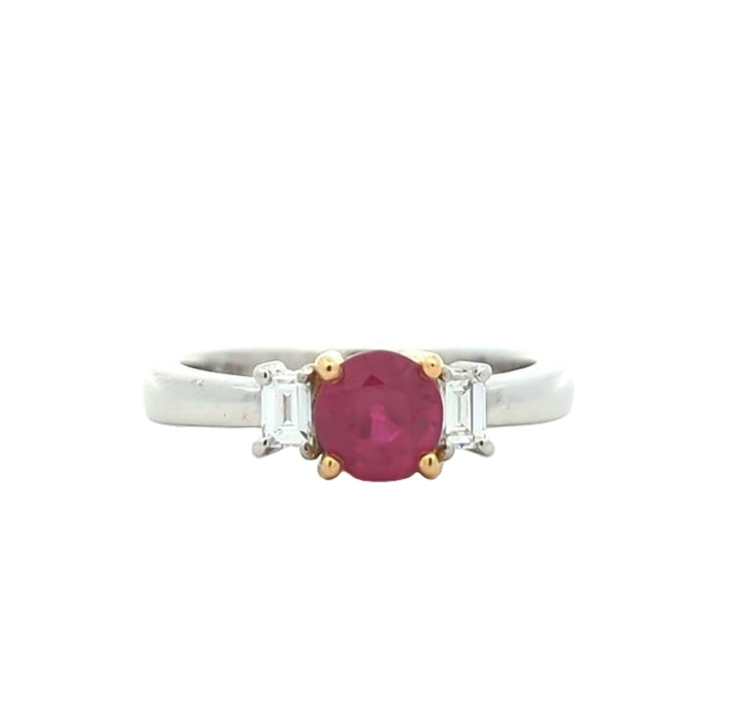 18KT White and Yellow Gold Natural Ruby and 0.21ctw Diamond Estate Ring